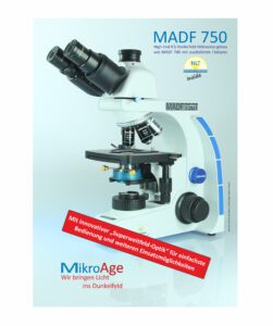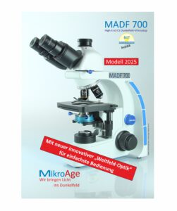Während der zwei Tage des Intensivseminars haben Sie die Möglichkeit, an den unten abgebildeten modernen MADF Mikroskopen arbeiten. Es handelt sich um ein MADF 700-24, ein MADF 700-25 und ein MADF 750. Diese Dunkelfeldmikroskope sind sehr bedienerfreundlich und erleichtern das Erlernen der Methode ganz enorm, damit genügend Zeit für das Wesentliche bleibt.